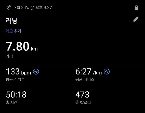7월 24일과 25일, 이틀 연속 러닝을 진행하며 데이터를 비교해보았습니다.