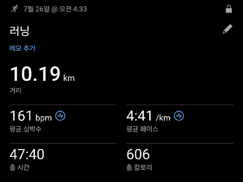 📊 7월 26일 — “심장을 두드린 조깅”, 강도 높은 페이스 러닝