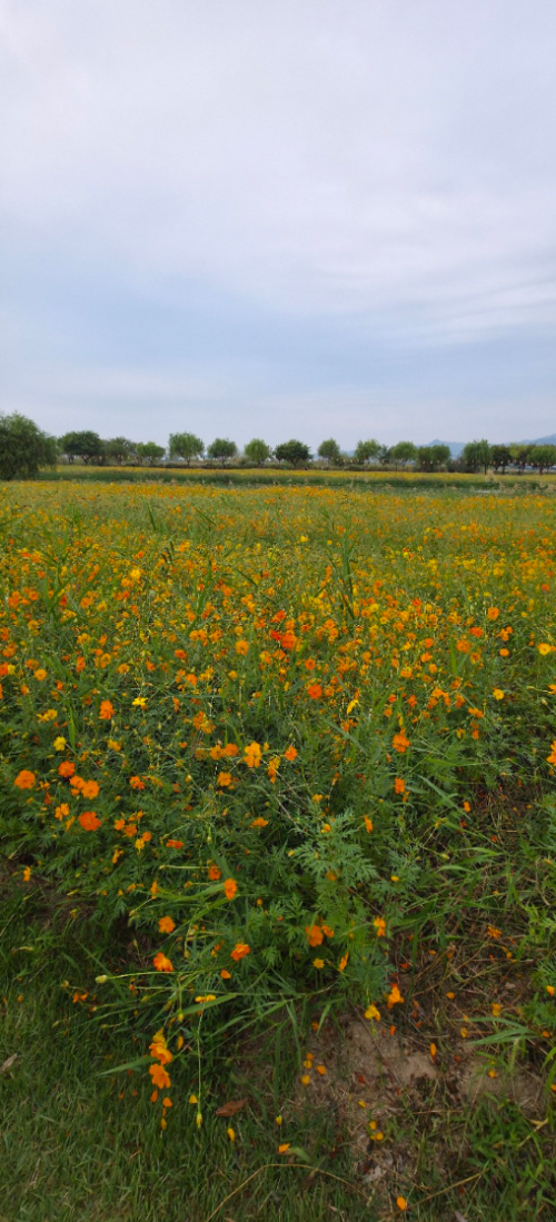 코스 초반, 눈 앞에 펼쳐진 건 드넓은 꽃밭이었습니다. 노란색과 주황색이 섞인 코스모스들이 바람에 흔들리며 저를 반겨주었습니다. 러닝이 단순히 훈련이 아니라, 이렇게 계절의 빛깔을 온몸으로 받아들이는 행위라는 걸 다시금 느낄 수 있었습니다.