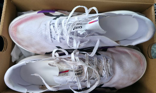 같은 아식스의 메타스피드 엣지 도쿄는 특유의 “찌걱찌걱” 소리가 꽤 거슬리는데, 레이는 그보다 훨씬 조용합니다. 트랙에서는 거의 신경 쓰이지 않았습니다.