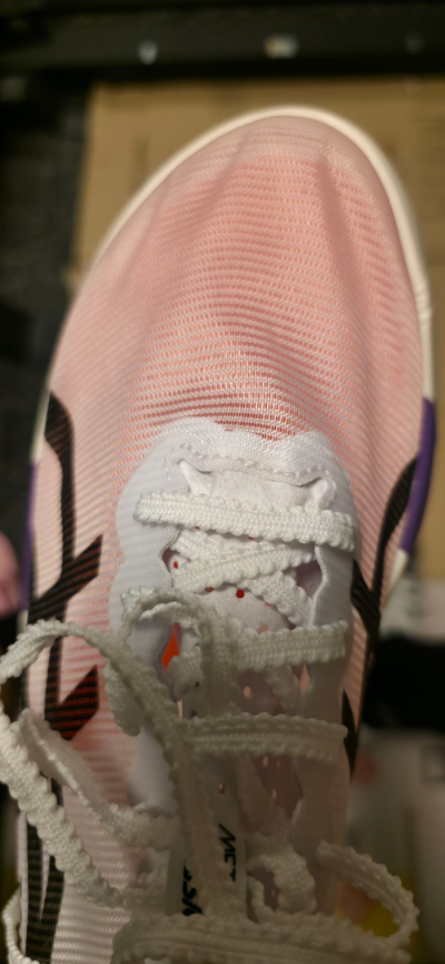속이 비칠 정도로 얇고 투명한 메쉬 덕분에 통풍은 말할 것도 없습니다. 이날 CEP 양말을 착용했는데도 답답함이 전혀 없었고, 땀이 차거나 발이 뜨거워지는 느낌이 덜했습니다. 장마철 비온 뒤 트랙에서 사용했음에도 발이 무겁게 젖는 느낌이 덜한 것도 인상적이었습니다.