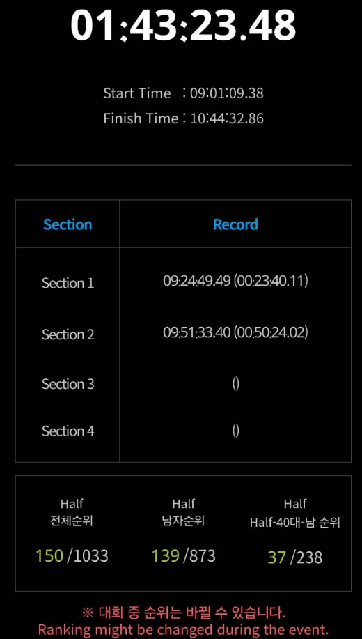 🏁 대회 기록 : 1시간 43분 완주