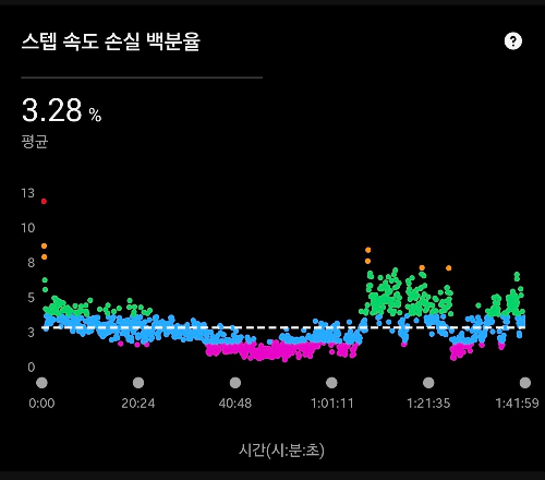 | 스텝 손실률 | 없음 | 3.28% 기록 | 피로 누적에 따른 효율 하락 예측 가능 |
