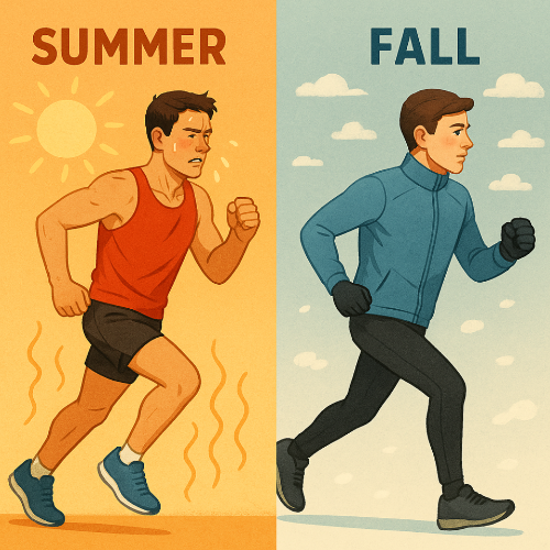 이는 ‘심혈관 drift(심박 상승 현상)’을 일으켜 후반부에 심박이 급상승하며 페이스가 무너집니다. - 반면 가을(7~12°C) 은 외부 공기가 체온 조절을 돕기 때문에,