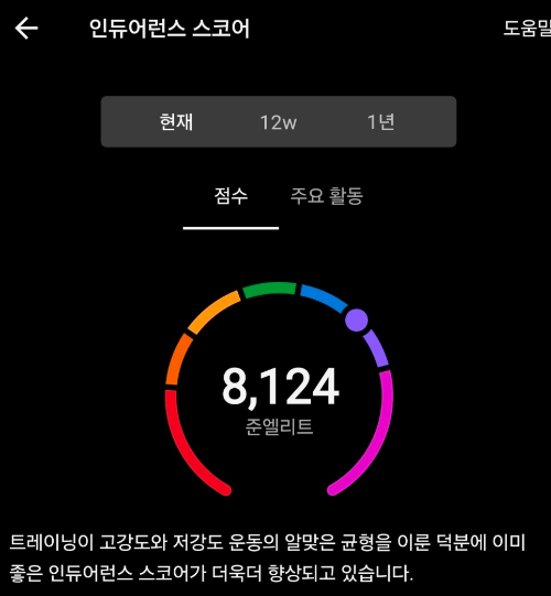 ⚙️ 3. 인듀어런스 스코어 8,124점 — ‘준엘리트’의 회복력
