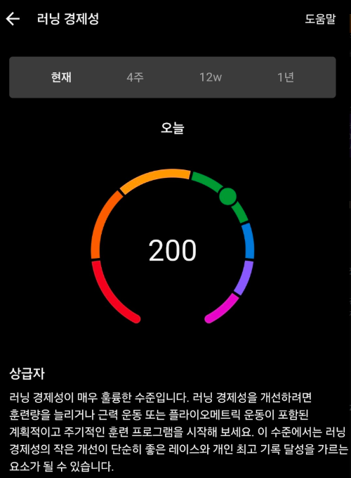 러닝 경제성 200은 상급자 구간 중 최상위로,