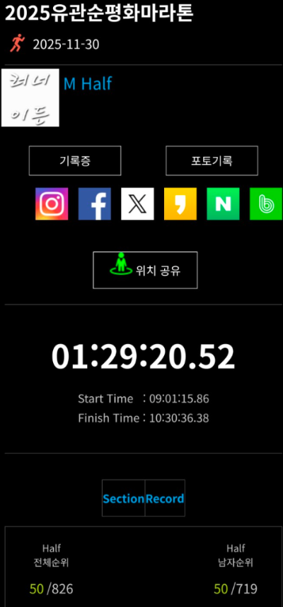 🏆 6. 결과 요약 (2025 유관순 하프)