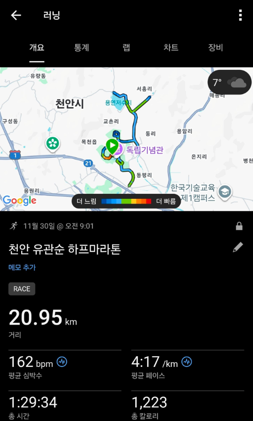 🏃♂️ 2025 유관순 하프마라톤 완주기 — 맞바람 속에서 끝까지 달린 나의 모험
