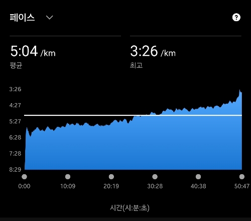 4~6km 구간부터는 5분 30초대 → 5분 10초대까지 서서히 끌어올렸습니다. 이 시점부터 호흡이 조금씩 깊어지기 시작했고, 몸의 중심이 앞으로 자연스럽게 이동하는 느낌이 들었습니다. 흥미로운 점은 고관절 통증이 오히려 이 시점에서 더 줄어든다는 것입니다. 이는 혈류가 충분히 공급되고 근육이 완전히 데워졌다는 신호입니다.