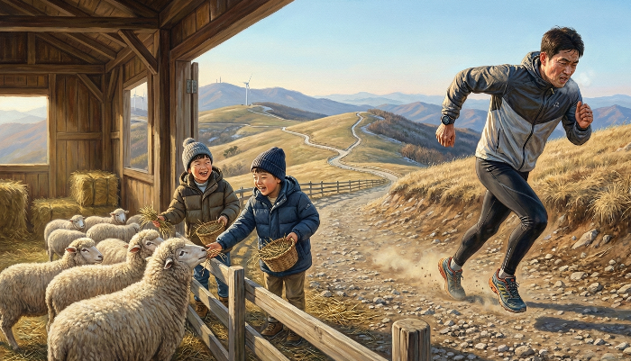 오르막은 언제나 생각보다 가파르고, 숨이 차도, 다리는 생각보다 오래 버텨요. 훈련 효과 +3은 숫자로 남지만, 그 과정의 감정은 마음에 남아요. 아이는 양에게 먹이를 주고, 저는 저 자신에게 자극을 줬어요. 결국 오늘도, 각자의 방식으로 잘 살았어요.