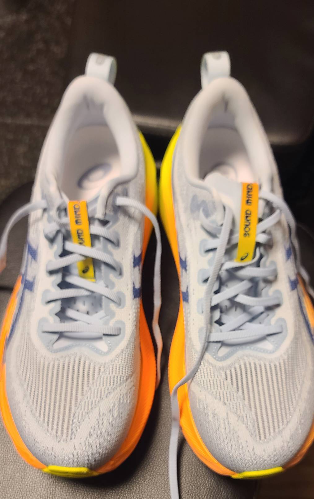 색상만 다르지 똑같이 가볍고 통풍 적당하고 플레이트 없지만 탱탱하고 팔방미인 신발 같아요! 성능 면에서는 화이트 모델과 100% 동일해요. 하지만 이 비비드한 오렌지-옐로우 그라데이션 컬러웨이가 주는 에너지는 정말 특별했어요! 🔥