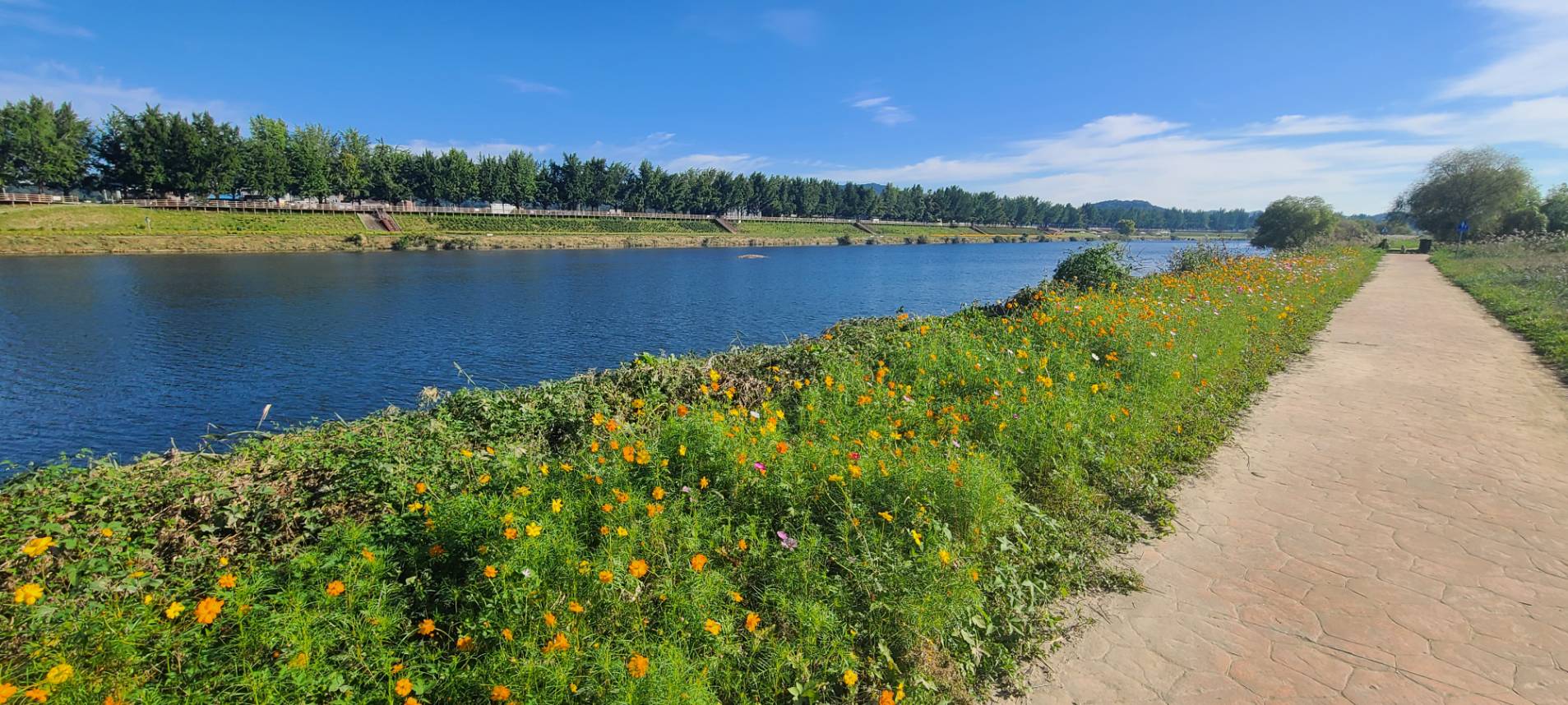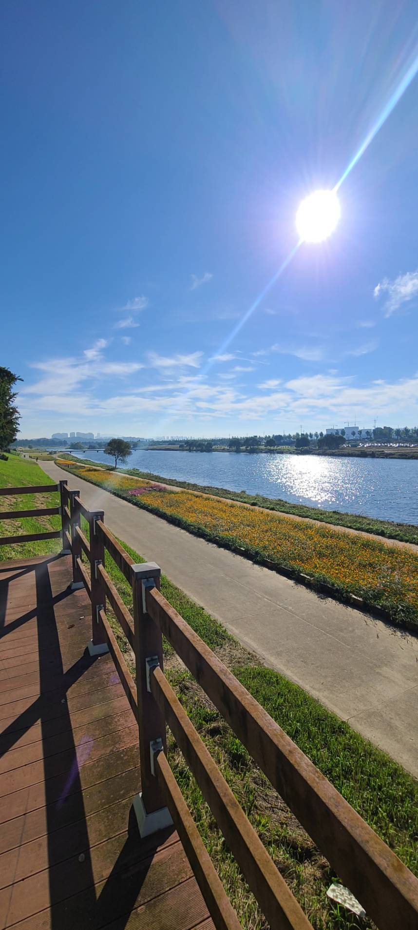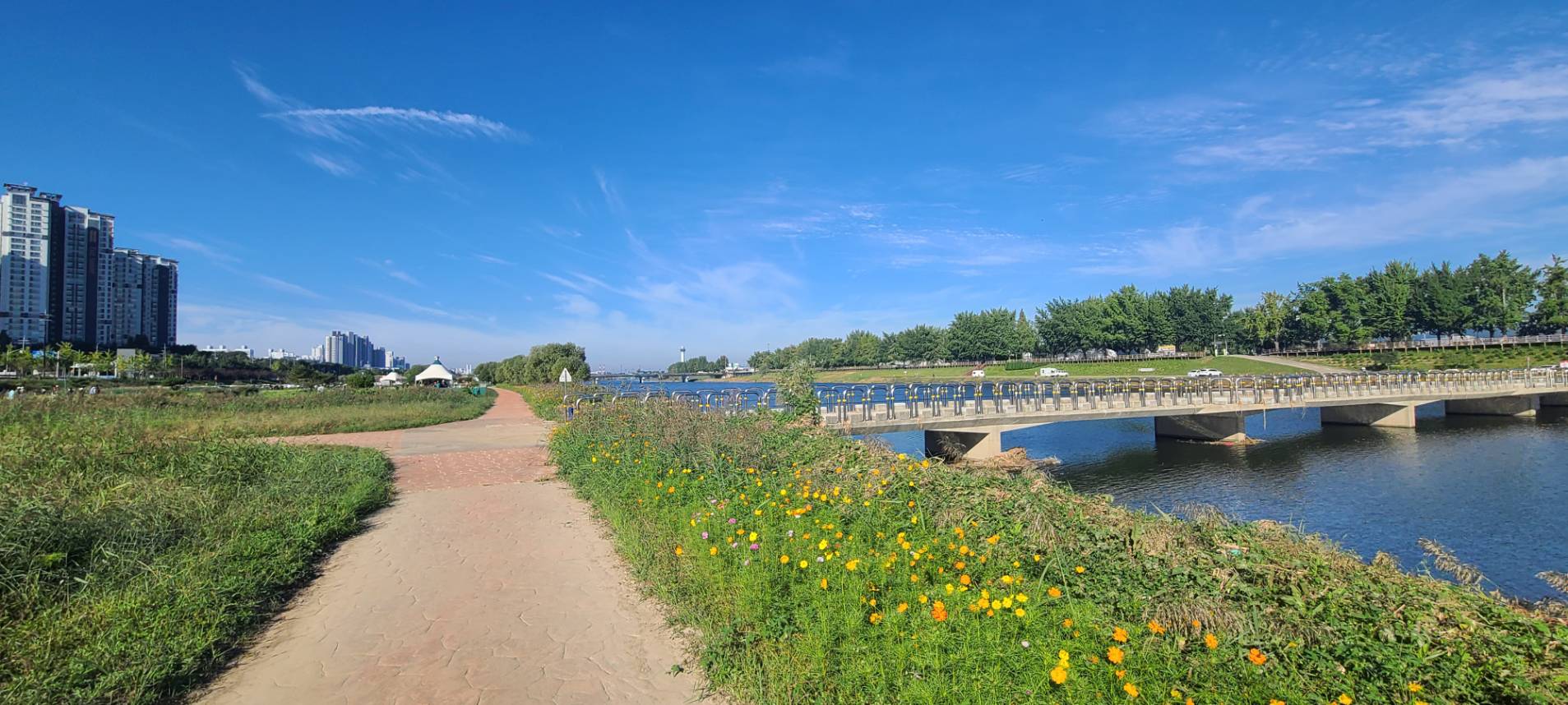 맑은 하늘과 강물이 만나는 지점에서 뛰는 기분은 정말 특별했어요. 햇살이 강렬하게 내리쬐었지만, 시원한 강바람 덕분에 상쾌한 러닝을 할 수 있었답니다.