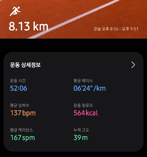 | 🌙 러닝 시간대 | 오후 8:55 ~ 9:51 |